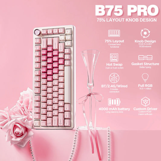 YUNZII B75 PRO Pink Mechanical Gaming Keyboard